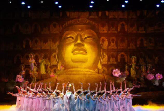 演出當(dāng)晚,最具中國(guó)民族舞風(fēng)韻的“金光千佛”首先亮相就贏得熱烈掌聲,觀眾席不時(shí)發(fā)出“太美了”的驚嘆之聲。隨后,反彈琵琶等曼妙舞姿在舞臺(tái)上逐一呈現(xiàn),用唯美的肢體語(yǔ)言,再現(xiàn)了史詩(shī)般的敦煌仙境。在兩個(gè)小時(shí)的演出中,多變的舞美場(chǎng)景、豐富的舞蹈造型、唯美的舞姿將絲綢之路濃縮成一出扣人心弦的不朽傳說(shuō)。