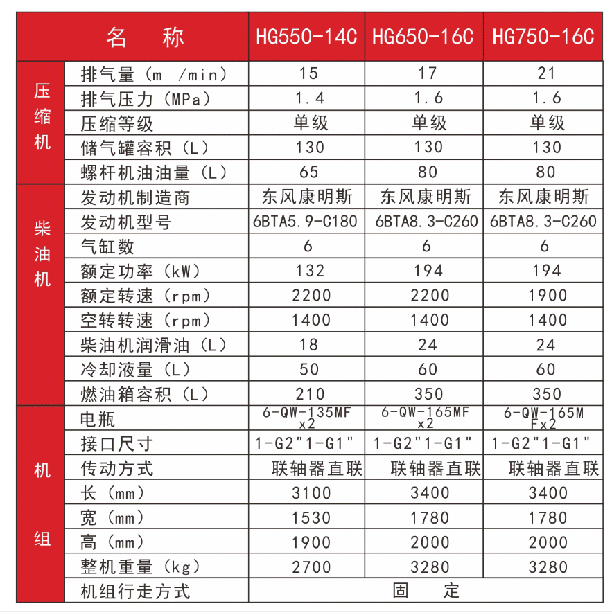 柴驅-HGT中低壓系列移動空壓機 HGT460、HGT550、柴移