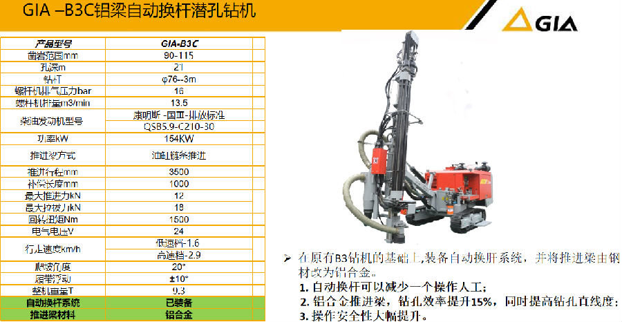 GIA –B3C鋁梁自動(dòng)換桿潛孔鉆機(jī)