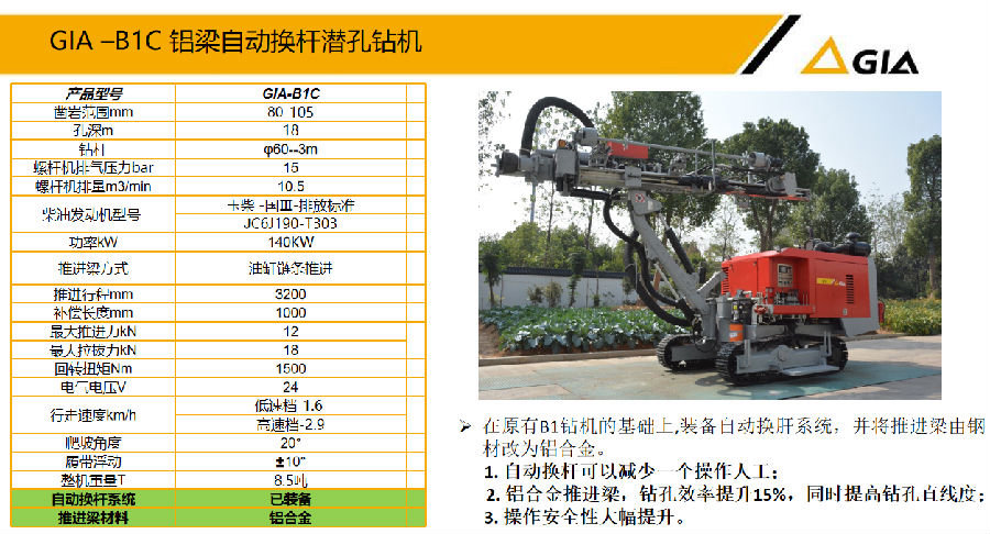 GIA –B1C 鋁梁自動(dòng)換桿潛孔鉆機(jī)