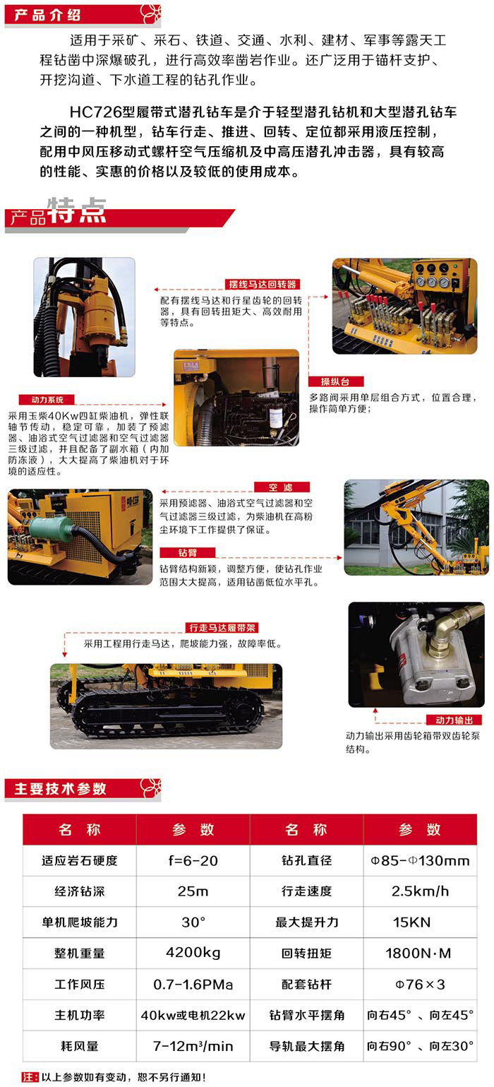 HC726履帶式露天潛孔鉆車