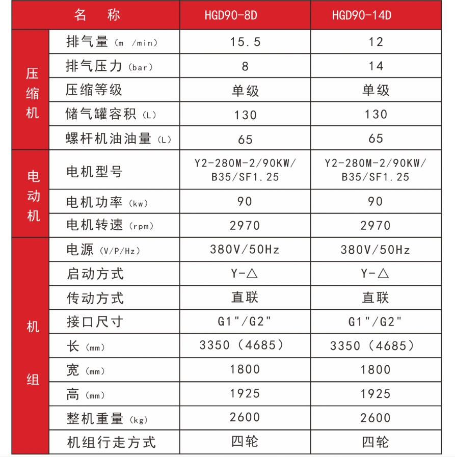 電驅(qū)-HGD中型移動空壓機(jī)系列 HGD110、HGD132 電移